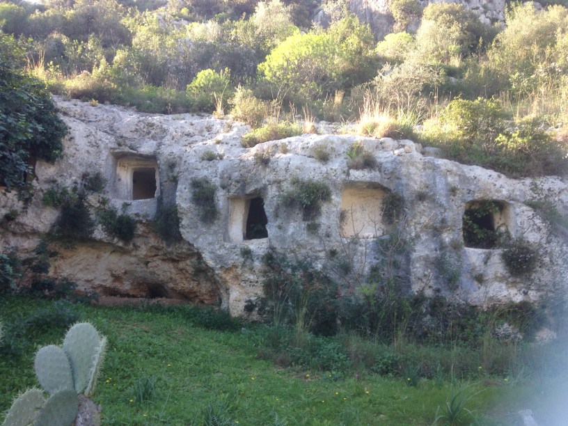 Day three of our hire car and we now have a newer car. A bigger, automatic car, but unfortunately a bit of a gas guzzler. As we had done most of the big drives, we now were focusing on one place stops. Today we decided that it was The Necropolis Di Pantalica. Not far from the famous Syracuse. Listed as a UNESCO world heritage site its a collection of about 4000 tombs dating from the 7th-13th centuries BC. We headed off about 11am after sorting out the paperwork for the newer car. A lot easier to drive, we headed off back down the autostrada. Exiting off at Catania we found ourselves heading along other main roads and autostradas that were free. About 7 mins from the destination, again the sat nav deciding there was a better route. The road no wider than the car and rocks hugging the side of another goat track, we winded up and down these paths. They really weren’t roads. Even the road sign was an explanation mark. This probably should have been the point we looked for another route. It would have been ok in the first car, it was smaller. But this was crazy. Finally arriving at the parking for the necropolis. Stressed and cursing. We got out to make sure we hadn’t added any dents or scratches after the hair-raising detour. The Necropolis settled high up in a beautiful national park setting. We asked a guy sitting in his car, if it was open. He said yes and in Italian, that no dogs are allowed. He then went onto say, if he covered his eyes, he didn’t see anything. The marvels of hand signals in Italy. We headed in and along the limestone cliffs, walking down staircases, carved or eroded over time. The river Anapo flowing down the bottom. As you go further in, you can look across and all through the cliff face and hillside you see the tombs. Square cut boxes, with windows or doorways opening out over the river below. These are high up, many hundreds of metres. Its eerie and amazing all rolled into one. You wonder how back in the day they reached these tombs, did they climb down some how or up? We headed down the path, passing many on our side of the river. Peering inside, some barely big enough to lie down in. Others like rooms. One had a limestone like bed. As we descended the staircase we arrived at the river bed, storms leaving a trail of debris. A beautiful green / blue pool of water collected not far from a few lower tombs. Looking up from the bottom, tombs all around up on the cliffs above. The day heating up we climbed back up. You can walk on the other side, but you need to drive 11km around to the other side. Especially with the river bed now blocked across. After our sat nav meltdown, we decided that we may return with the motor home in the new year. Apparently you can park on the other side. Leaving the area we decided to head through the nearby town of Sortino. We figured surely the sat nav would go on main roads back, and for once it did. Driving back we found our cheapest fuel stop in Italy so far €1.39 for diesel. On the motorway it was packed, people taking advantage of the cheap fuel. Pity its on the wrong side as we will pass it leaving in the motor home. That would be the place to go. One more day of car hire and we think we will head to Castelmola, its famous bar Turrisi and then drive to Lidl to stock up. Having not been to Lidl in 6 weeks, im having withdrawals. Christmas ( Natale ) is around the corner, another year nearly finished. The time has flown in Sicily and we havent even gone round the island yet. Vita amore e italia (love life and Italy)…….![IMG_9654[1]](https://wanderlustcraddocks.com/wp-content/uploads/2018/12/IMG_96541.jpg?w=616)